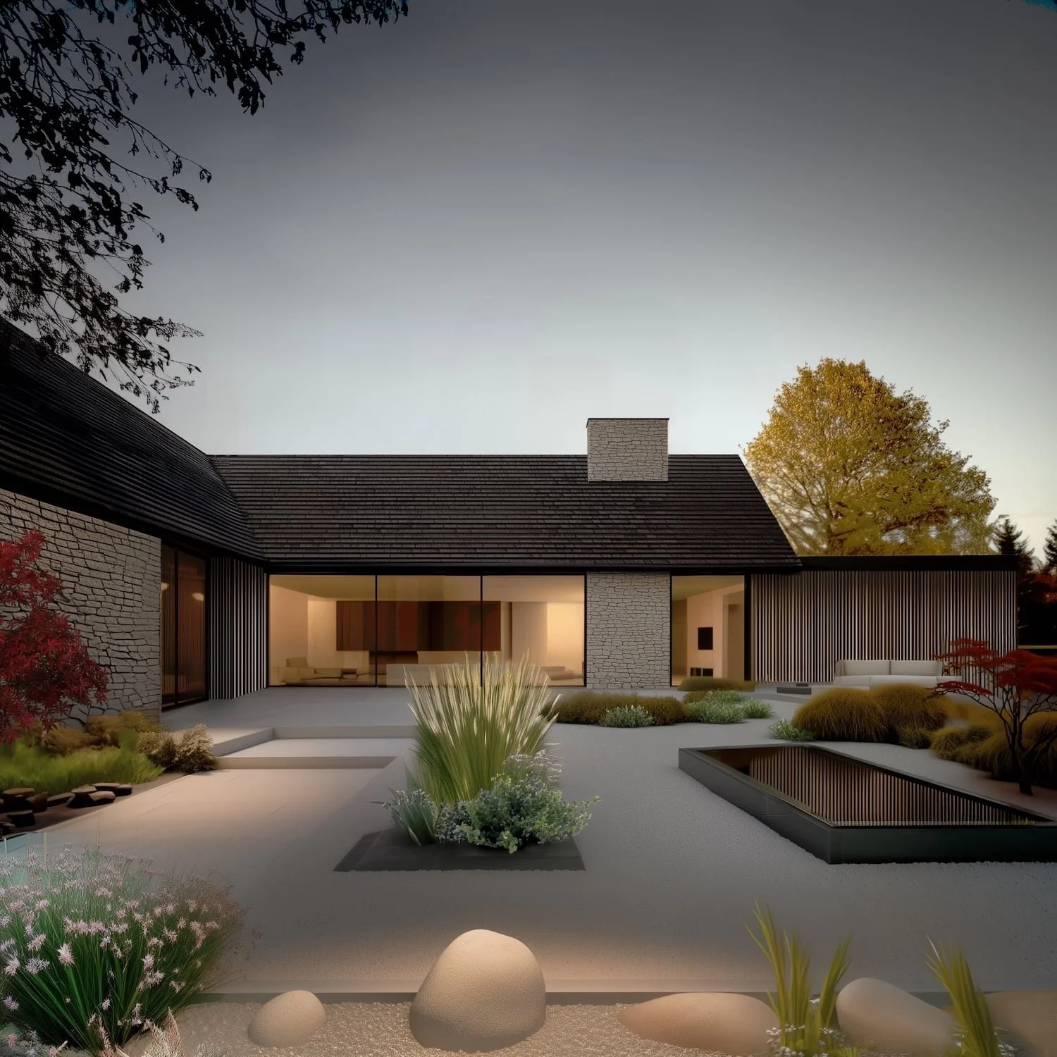 This refined palette of materials is arranged to visually complement the local conservation vernacular of barns and agricultural buildings, paired with contemporary modern design, high-performance glazing and single floor accessibility for future-proof living.